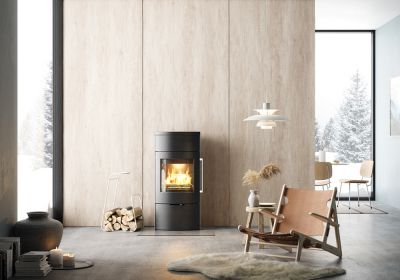 40cm以上の薪が入る燃焼室を備えながらも、ストーブ本体の奥行きを僅か372mmに抑えた薄型設計。可燃物からの離隔距離も少なく、広いスペースを必要としないので薪ストーブを配置する場所を選びません。オプションのフレッシュエアキットを追加することで外気導入が可能。現代の高気密・高断熱住宅において求められる燃焼性能をクリアしています。